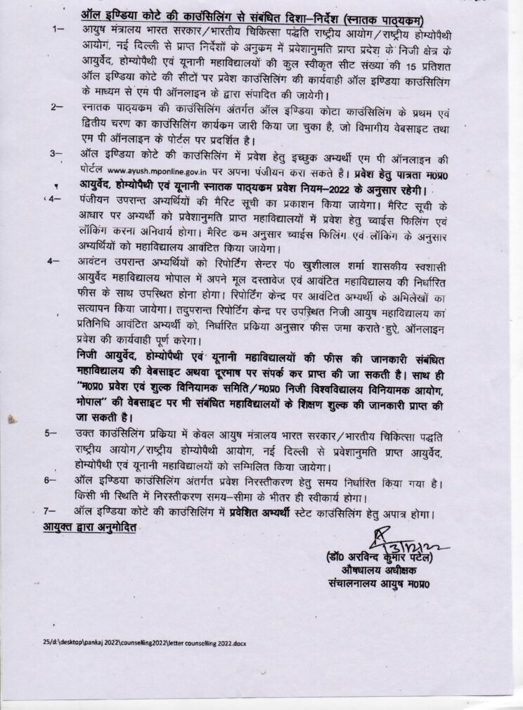 Fee Fixed by AFRC Govt. of M.P. Rs.1,07,000/– per year